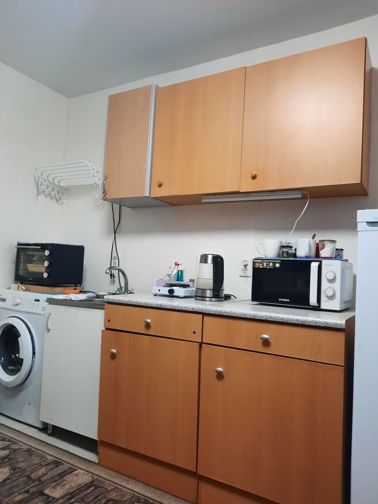 В продаже отличная комната в общежитии блочного типа на улице Фучика 12. Статус комнаты, отказы соседей не требуются. В блоке 8 комнат, два туалета, ванная, умывальник, большая кухня с электроплитами, балкон. В нашем коридоре 4 комнаты, в которых проживают по одному человеку, тихо, спокойно, порядок. Комната светлая и очень теплая, с ремонтом. Окно большое пластиковое, потолок натяжной, входная дверь новая. В комнате горячая и холодная вода, установлена стиральная машина. В комнате остается вся мебель: кухонный гарнитур, шкаф, диван, а также новый двухкамерный холодильник Позис и новая стиральная машина Атлант. В кухне установлены свои шкафы.   Состояние: заезжай и живи.